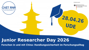 Stehen Sie vor einem Forschungsaufenthalt in der VR China? Planen Sie ein Kooperationsprojekt mit chinesischen Partner:innen oder arbeiten Sie in einem internationalen Team mit chinesischen Kolleg:innen? Beim Junior Researcher Day können Sie sich auf Ihren Forschungsalltag in und mit China vorbereiten. Die eintägige Veranstaltung findet am 28. April 2026 in Präsenz an der UDE in Duisburg statt.